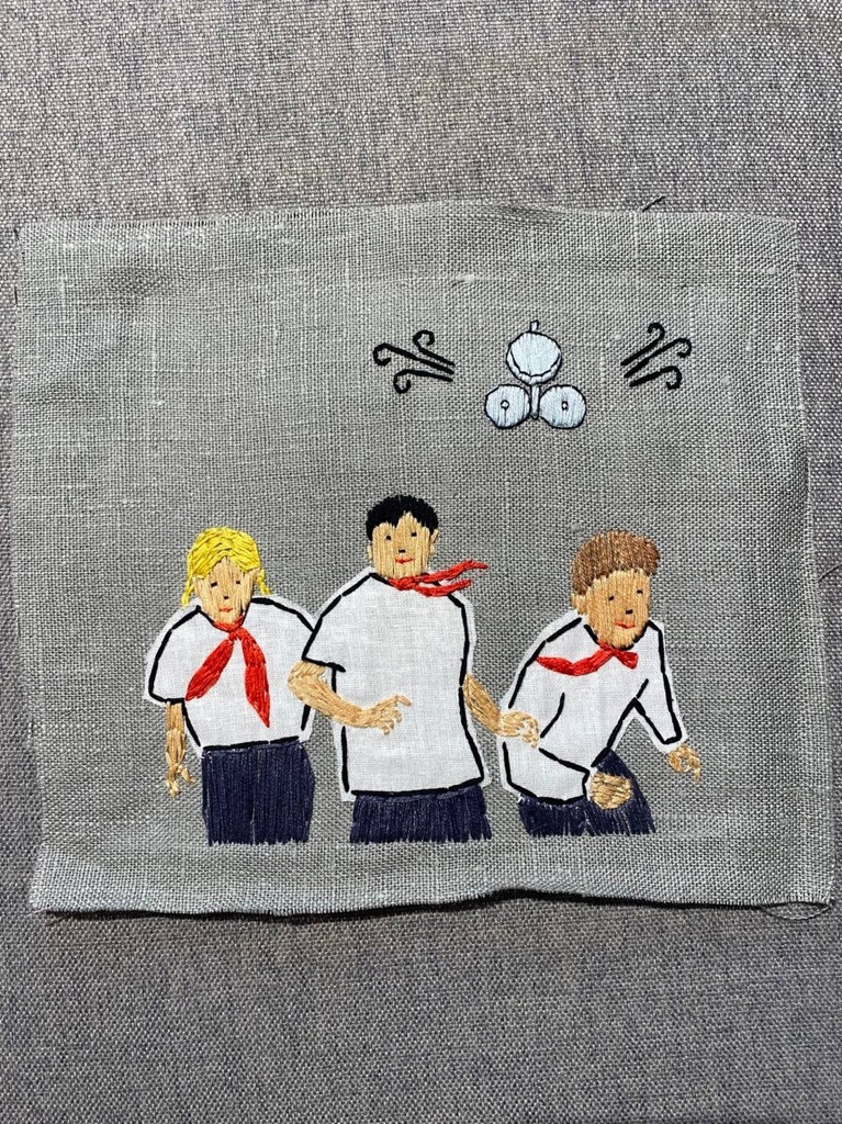 Короткие фразы и цитаты. Часто просто знакомые и по мультфильмам и книгам. Но хочется стоять перед этим маленьким кусочком материала и перечитывать, рассматривать. И чем дольше смотришь, тем больше проступают заложенные смыслы — грустные и смешные. Вероятно, каждый видит в них свое, но это и есть искусство», — Эмилия Кабакова.