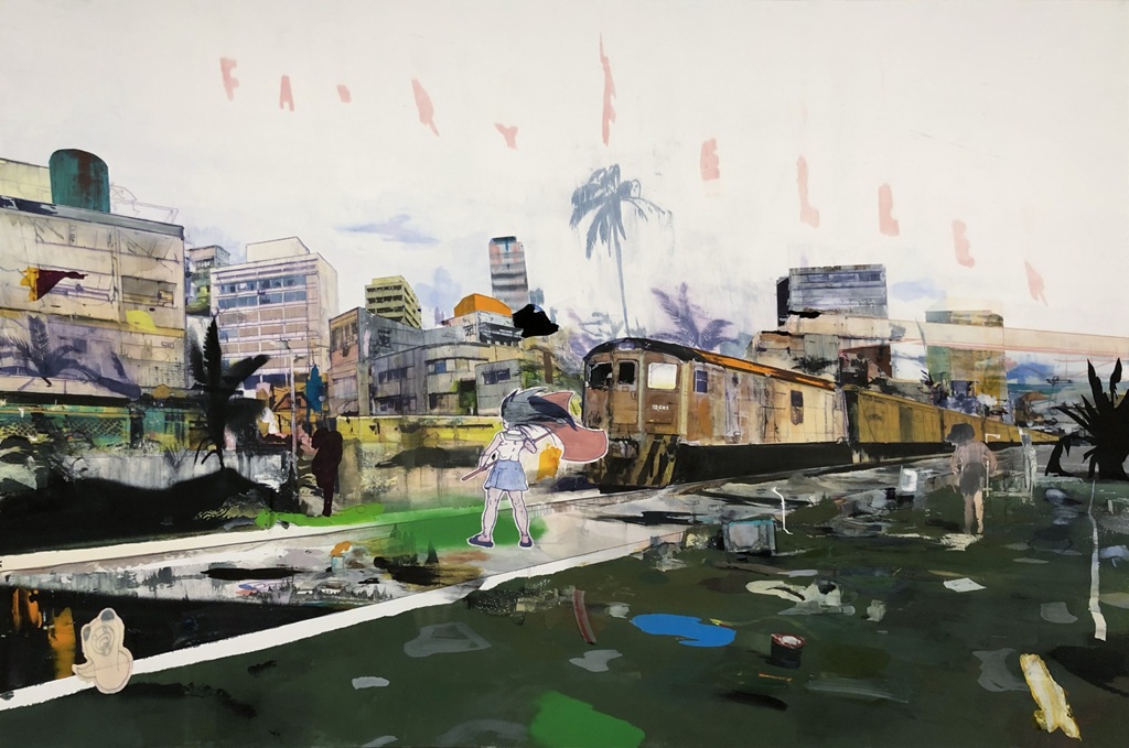 Заглавное изображение: М. Левиус. Турист. 2024. Холст, масло, ацетон, маркеры, аэрозольная краска. 120х180см. Предоставлено художником и галереей Anna Nova.