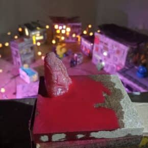 Выставка состоит из масштабных чугунных скульптур и литых алюминиевых барельефов. Выстроенные в общий маршрут объекты, обугленные и оплавленные, а, возможно, те, что выжили и закалились, обозначают собой жизнь «после».