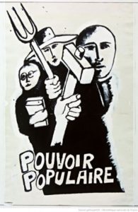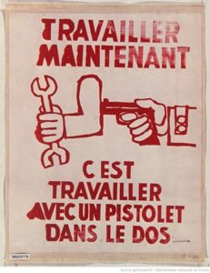 События «Красного мая» стали временем расцвета уличного протестного движения. Агитплакаты и лозунги рождались каждый день, моментально реагируя на действия официальных властей. Многие из них создавались в «народном ателье» (Аtelier populaire), которое на время событий буквально превратилось в подпольную типографию. На выставке в ММОМА будут представлены оригинальные афиши 1968-1970 гг. из частных коллекций, такие как: «Работа сегодня — это работа под прицелом пистолета» (Travailler maintenant c’est travailler avec un pistolet dans le dos!), «Держись вместе с товарищами до победы!» (Tenez bon camarades tous unis juscu’a la victorie!), плакат «СС», изображающий полицейского с дубинкой и щитом, на котором красуется логотип SS, или, например, узнаваемый плакат «Рабочие — объединяйтесь!», призывающий французов и мигрантов выступить единым фронтом в борьбе за свои права. Официальные СМИ были подконтрольны правительству Шарля де Голля, именно поэтому надписи на стенах и плакаты, создаваемые активистами в 1960-х, стали голосом улиц, альтернативным средством коммуникации с обществом.