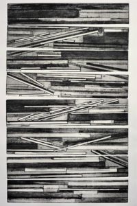Язык графики по своей сути очень скульптурен: каждый штрих, каждая линия, пятно, отсекая сентиментальность, собирают графическую историю в какую-то цельность. Геометрия объемных структур несет визуальную информацию о состоянии внутри и , напротив, визуальное повествование на плоскости есть некая трансляция извне.