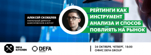 24 октября на DEFA.Kitchen выступит Алексей Скобелев (Markswebb Rank & Report) и расскажет о рейтингах в научно-популярном ключе.