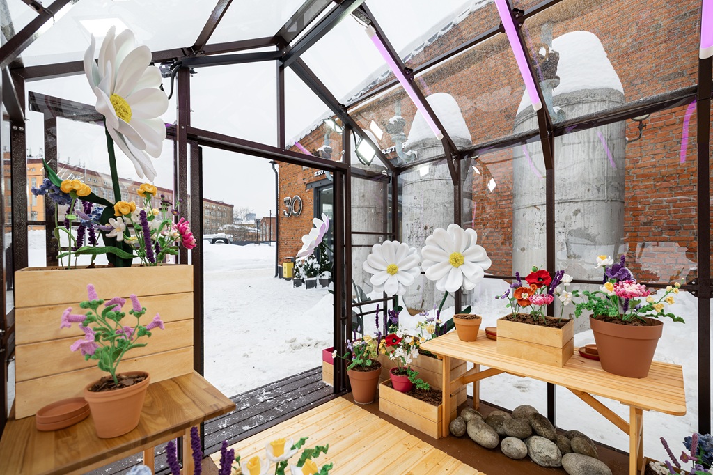Ключевым офлайн-событием проекта стала установка арт-объекта — теплицы с вязаными цветами на Хлебозаводе №9 в Москве. Пространство открыто для всех желающих: внутрь можно зайти, рассмотреть детали и сделать фотографии.