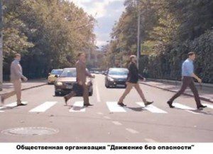 Госавтоинспекция МВД РФ не могла остаться в стороне и к концу 2012-го года при поддержке общественной организации «Движение без опасности» и Российского союза автостраховщиков провела широкомасштабную социальную кампанию по всей России «Пешеход, на переход». Главный ролик проекта является репликой на обложку двенадцатого альбома рок-группы The Beatles «Abbey Road». На обложке «битлы» сфотографированы переходящими улицу Эбби-роуд по пешеходному переходу.