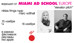 В ходе эксклюзивного воркшопа Elevator Pitch от Miami Ad School Europe, организованного mads, вы не только узнаете об этом, но и отработаете свои «лифтовые скиллы» вместе с преподавателями: Никлас Фрингс-Рупп (Niklas Frings-Rupp), основателем и управляющим директором Miami Ad School Europe; Марк Вошалл (Marc Voßhall), давним преподавателем, наставником и выпускником Miami Ad School Europe; Ариной Авдеевой, со-основателем и креативным директором Friends Moscow (также окончила Miami Ad School Europe); и Денисом Елисеевым, со-основателем Friends Moscow.