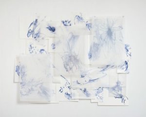 На выставке представлены четыре серии графических работ художницы, созданные за последние пять лет: «Катастрофы» (2012-2017), «Архив теней 1, 2» (2015-2017), «Стоически падая в море» (2016-2017), «Поколение» (2015-2017), — а также специально разработанные для ММОМА работы в жанре «сайт-специфик».