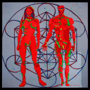 Анна Фобия работает в уникальной технике — использует фрагменты изображений с банкнот для создания диджитал коллажей с последующей печатью на дереве и склеиванием слоев в единый сюжет.