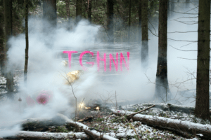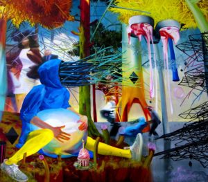 На выставке «This Game Has No Name» художники предлагают стать соучастником загадочной вечеринки в лесу. Специально к инсталляции в нижнем зале галереи музыкант и диджей Артемий Анрилов, под экспериментальным альтер-эго «Sofist», написал композицию с использованием собранного им модульного синтезатора.