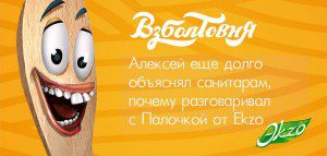 Чтобы продемонстрировать основные преимущества нового продукта, было создано анимационное юмористическое милк-ток-шоу «Взболтовня» из 11 серий. В проекте обыграна идея с главными ингредиентами Ekzo Milk Shake – кусочками фруктов и ягод в сочетании с молоком. Это короткометражные и искрометные сюжеты, где остроумный ведущий Палочка от мороженого Ekzo приглашает к себе самые отборные фрукты и ягоды, шутит и подтрунивает над ними. Клубника и банан (вкусы мороженого Ekzo Milk Shake) – главные гости шоу. Каждую неделю на YouTube появляется новая серия проекта.